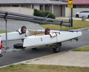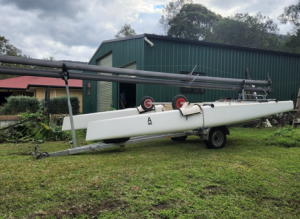 - This boat is good solid boat with no incident history – just underweight --comes with mackay galvanised trailer good tyres & spare – sail box -- can carry 2 masts & 2 boats, currently set up to carry 1 boat 2 masts.